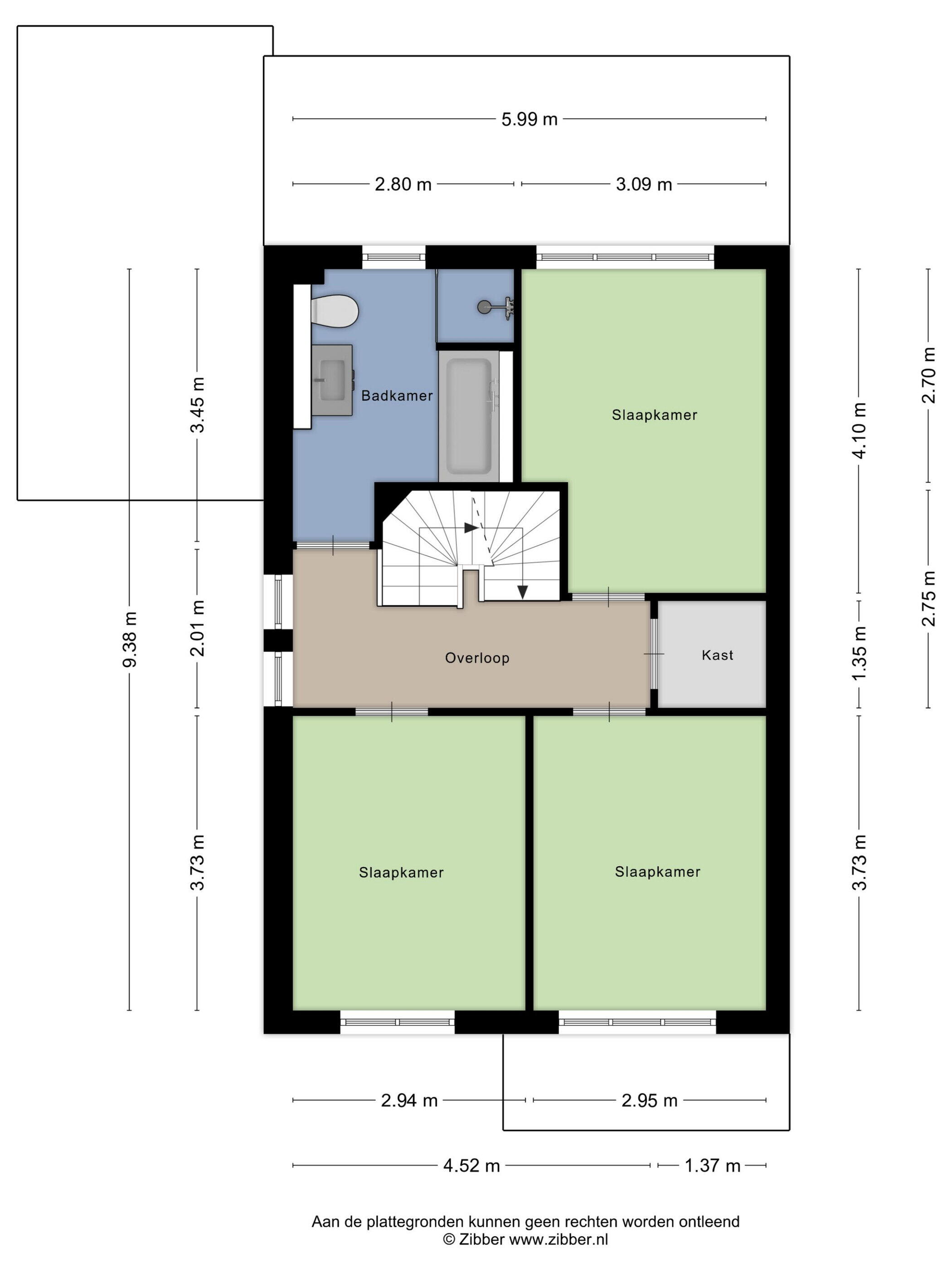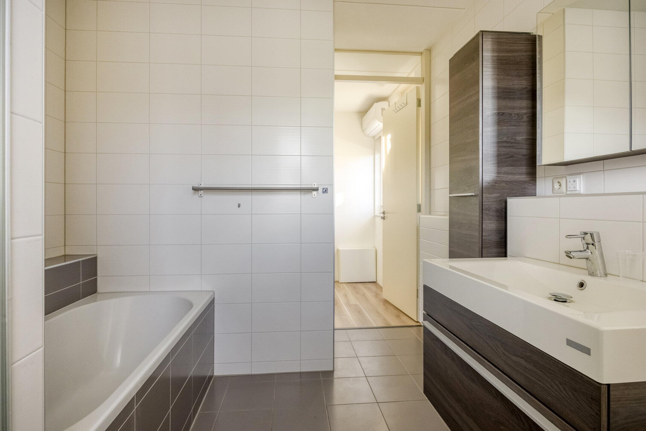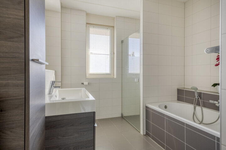 De eerste verdieping bestaat uit een overloop en biedt toegang tot de 3 mooie slaapkamers, de ruime badkamer en de trapopgang naar de tweede verdieping. De 3 slaapkamers zijn licht, ruim en voorzien een laminaatvloer en draaikiepramen. De badkamer is voorzien van inloopdouche, ligbad, wastafelmeubel, 2e toilet en is geheel betegeld.