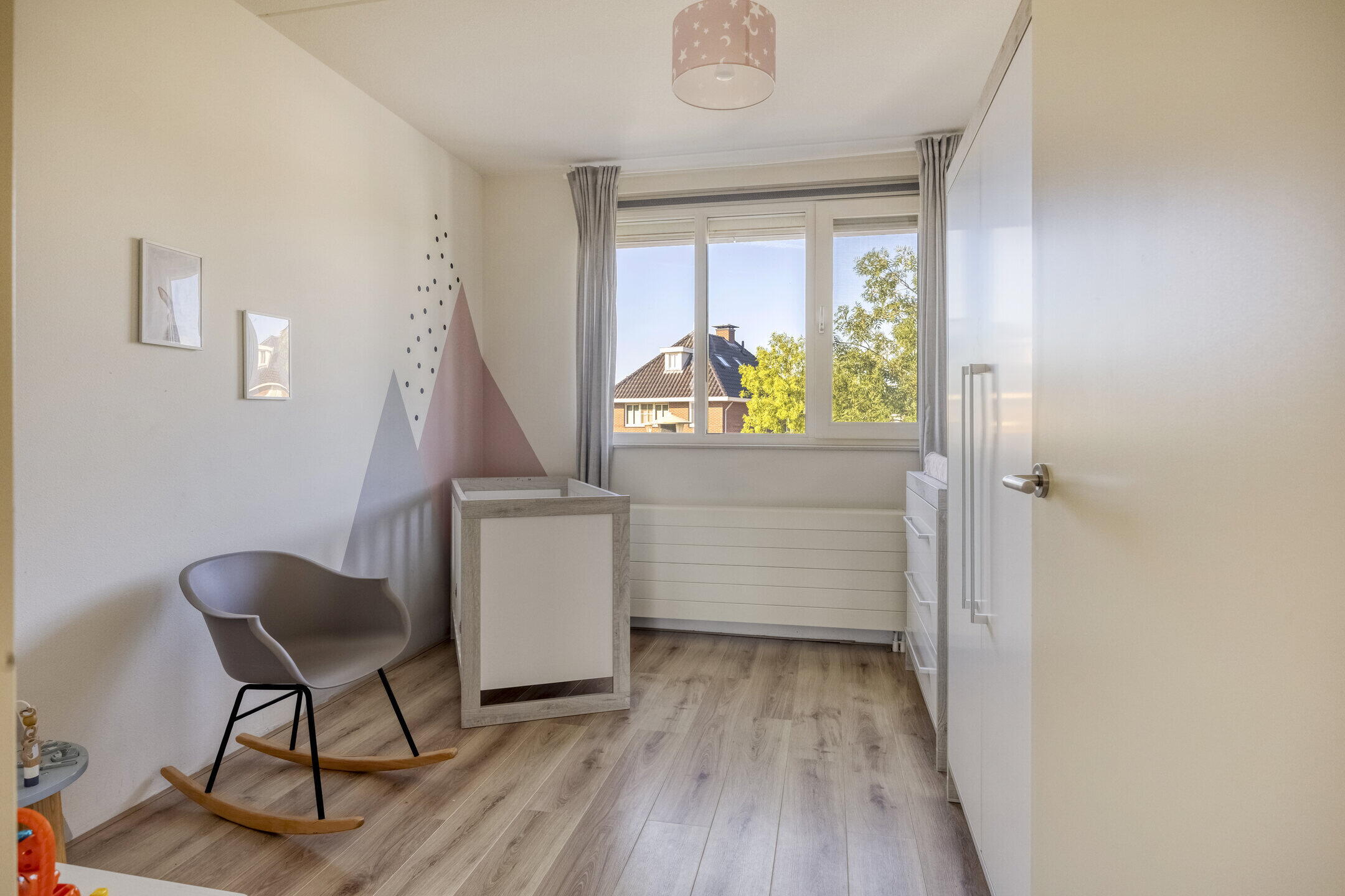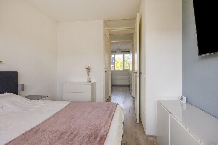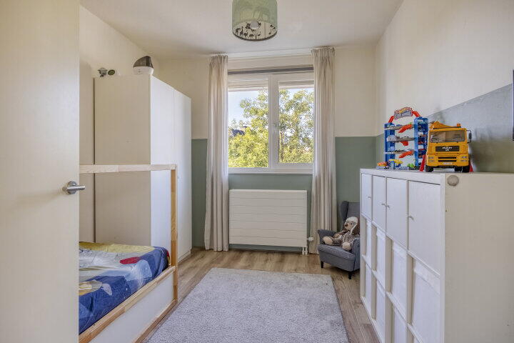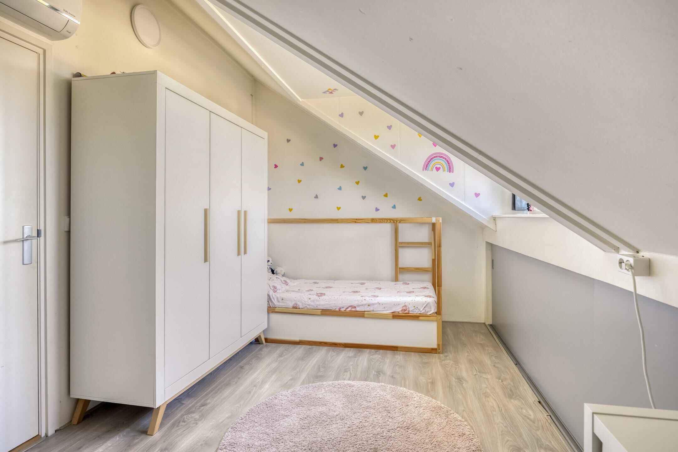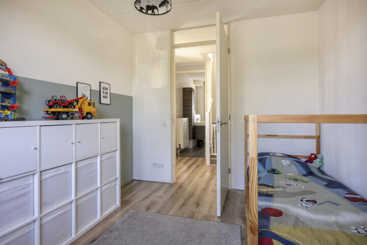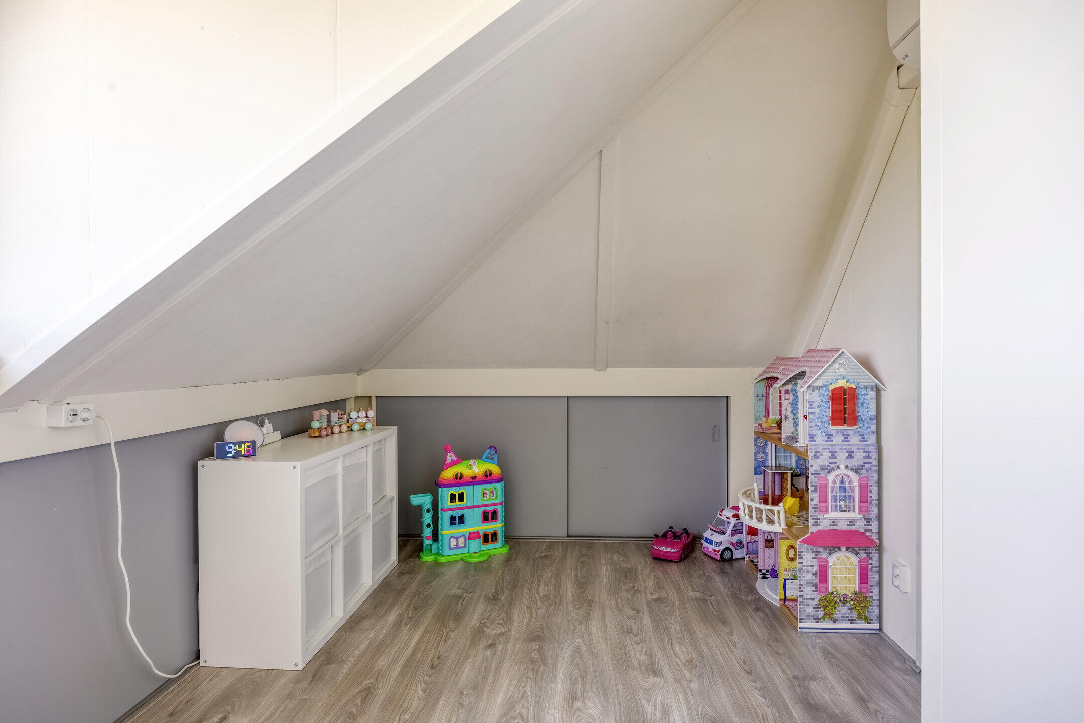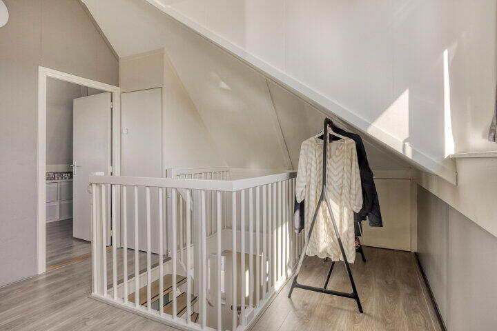 Via de vaste trap bereikt u de royale overloop met dakkapel, knieschotten voor extra bergruimte en opstelplaats voor Cv-ketel (2022), wasmachine, droger en mechanische ventilatie box. Ruime 4de slaapkamer met laminaatvloer en dakkapel.